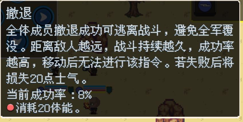 撤退规则:战斗中如果有勇者被击败是不能复活的,包括所穿戴装备也无法找回,所以打不过的情况可以选择撤退或重开战斗。撤退说明: