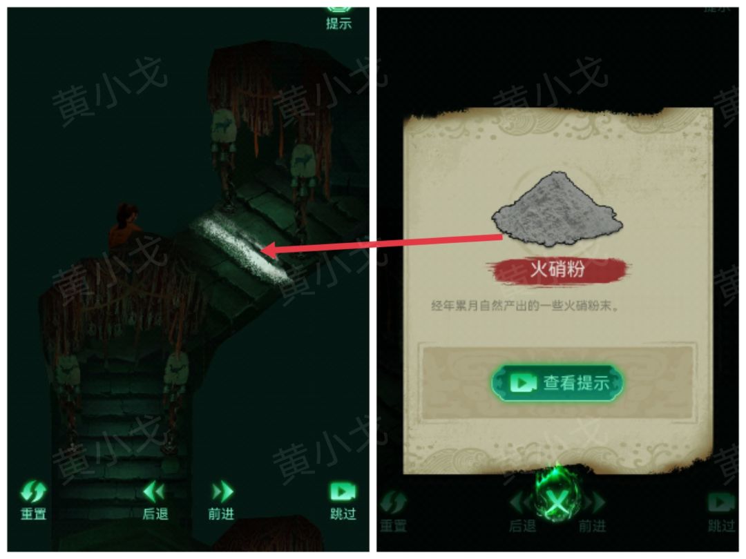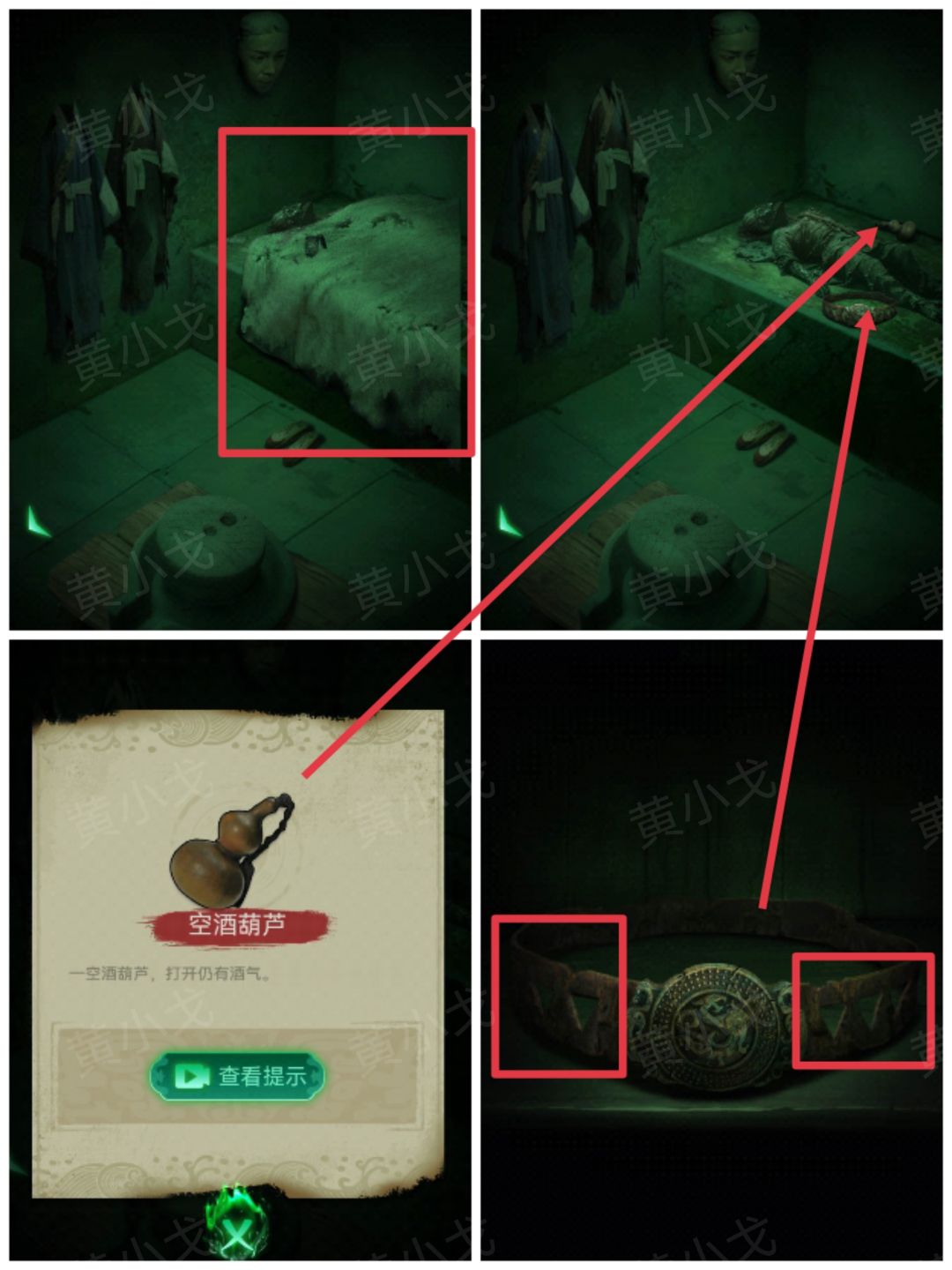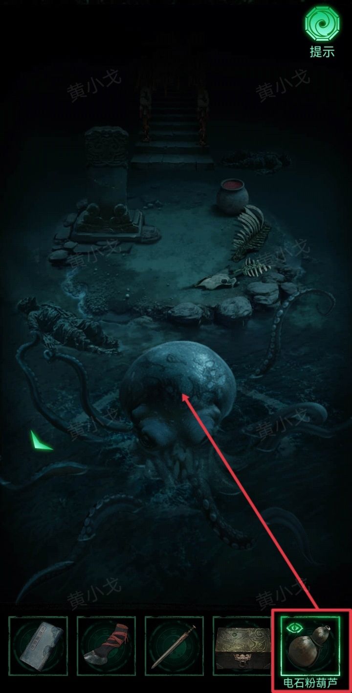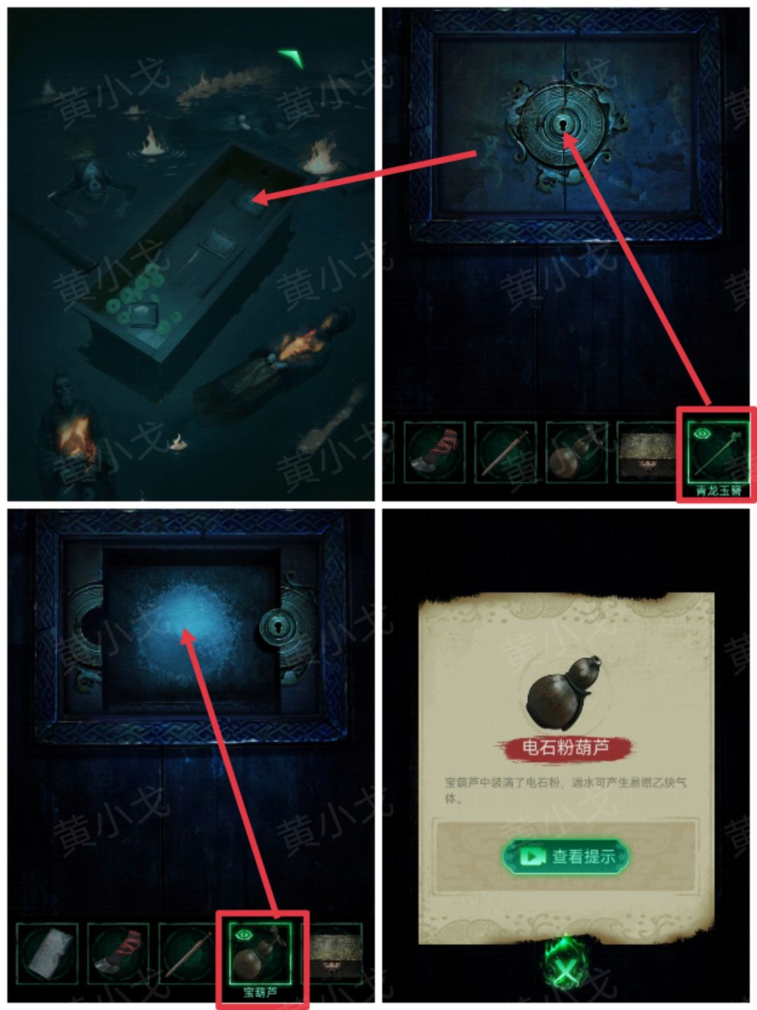 5.点击棺材中的匣子,插入【青龙玉簪】;用【宝葫芦】装取电石粉,获得【电石粉葫芦】