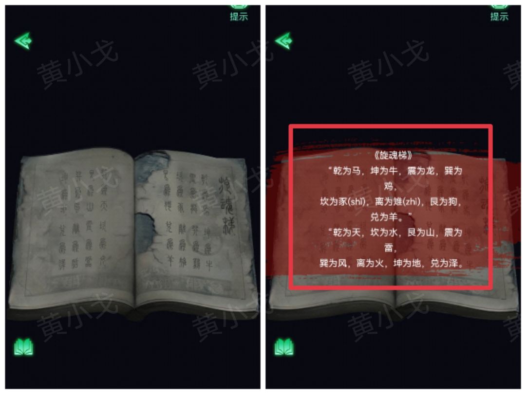 13.根据挂饰上的图案,结合【天机鉴隐录·旋魂梯】上的描述和碑文线索,按照正确的路线过旋魂梯