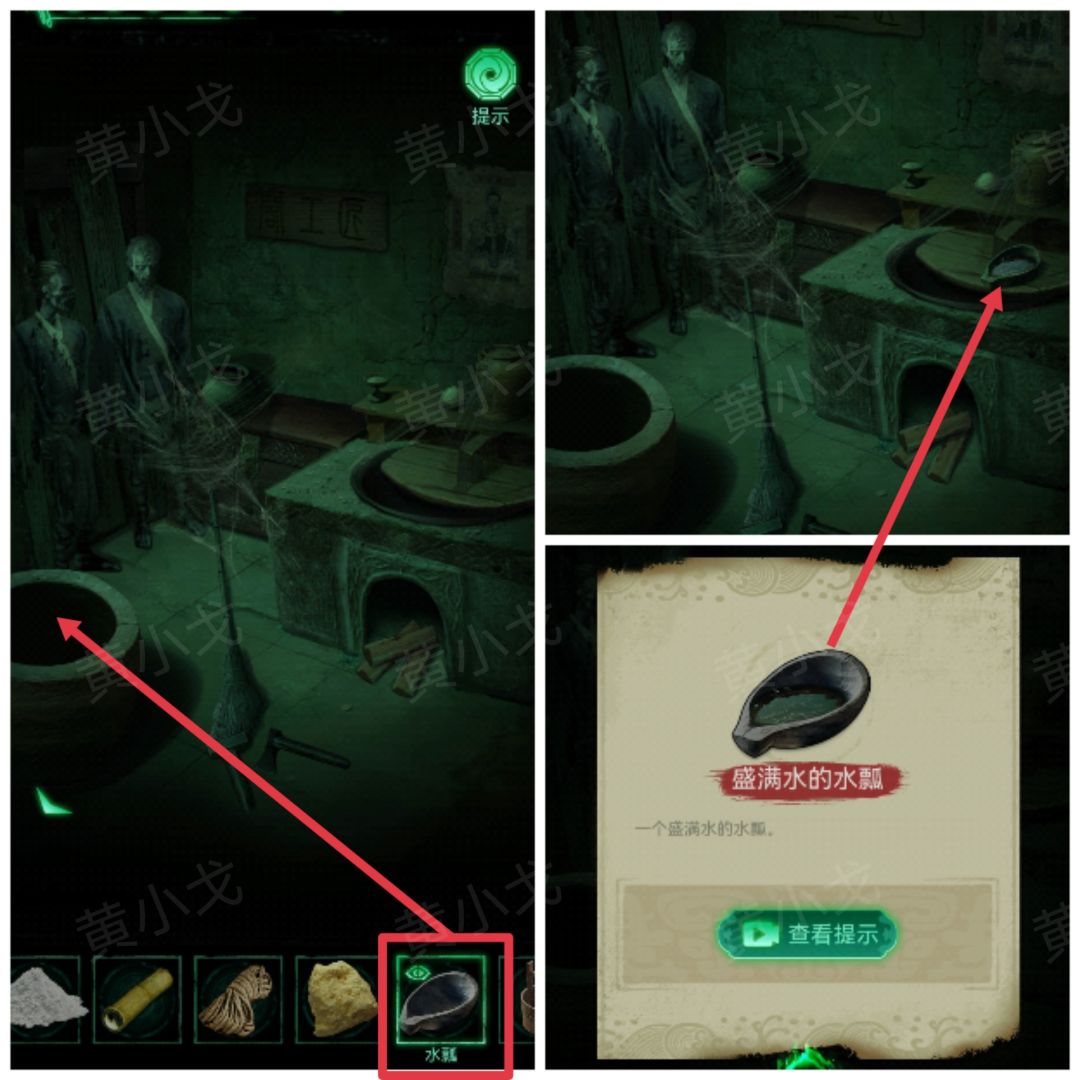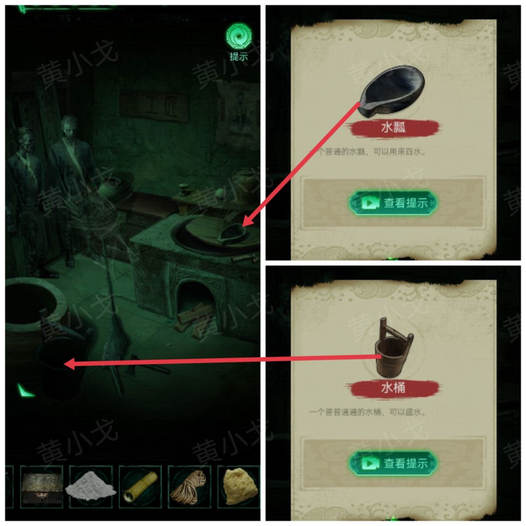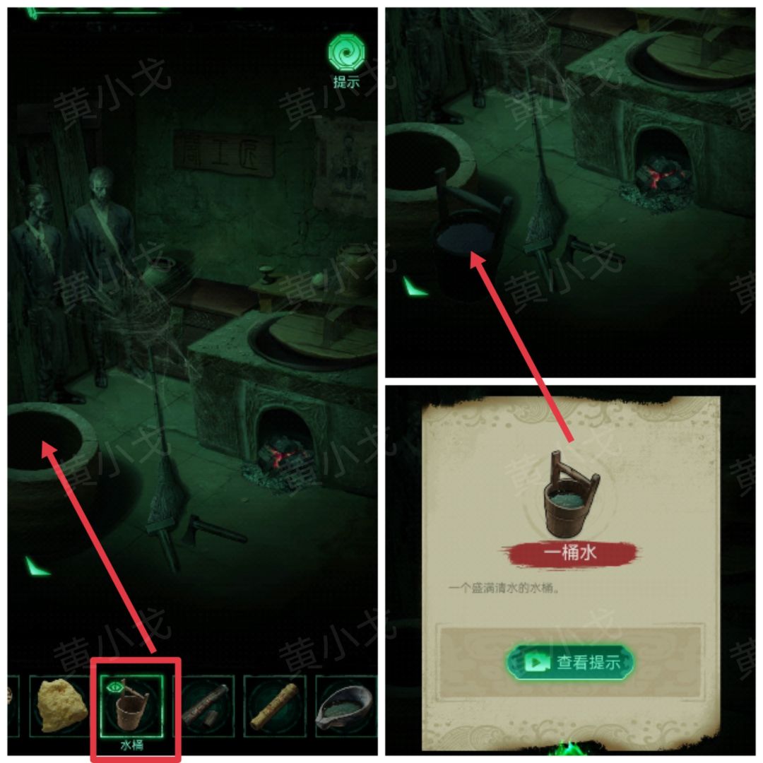 15.点击拾取地上的【水桶】;灶台上的【水瓢】