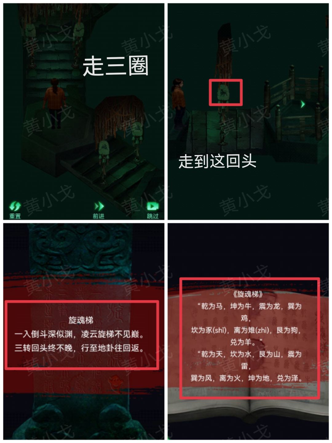 🔶碑文:三转回头终不晚,行至地卦往回返(需要转三圈再回头,在地卦之处回头)