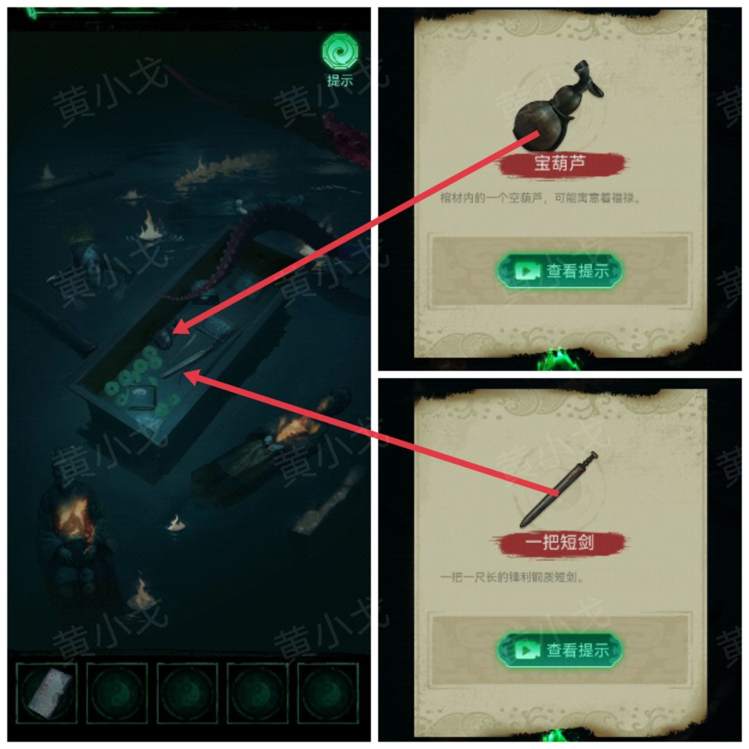 1.拾取棺材中的【一把短剑】和【宝葫芦】