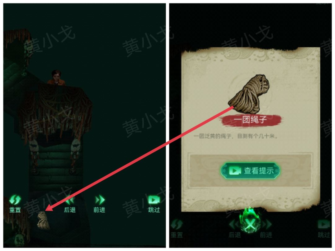 11.前进,拾取【一团绳子】,拿完所有东西就重置