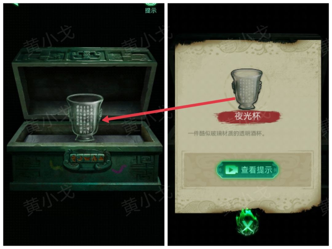 34.点击青铜鼎,使用【夜光杯】,获得线索