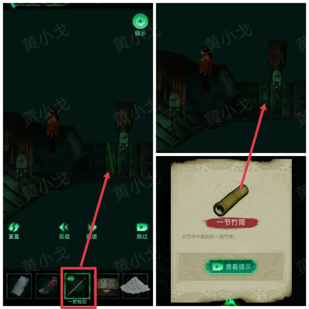 10.前进,对竹竿使用【一把短剑】,获得【一节竹筒】