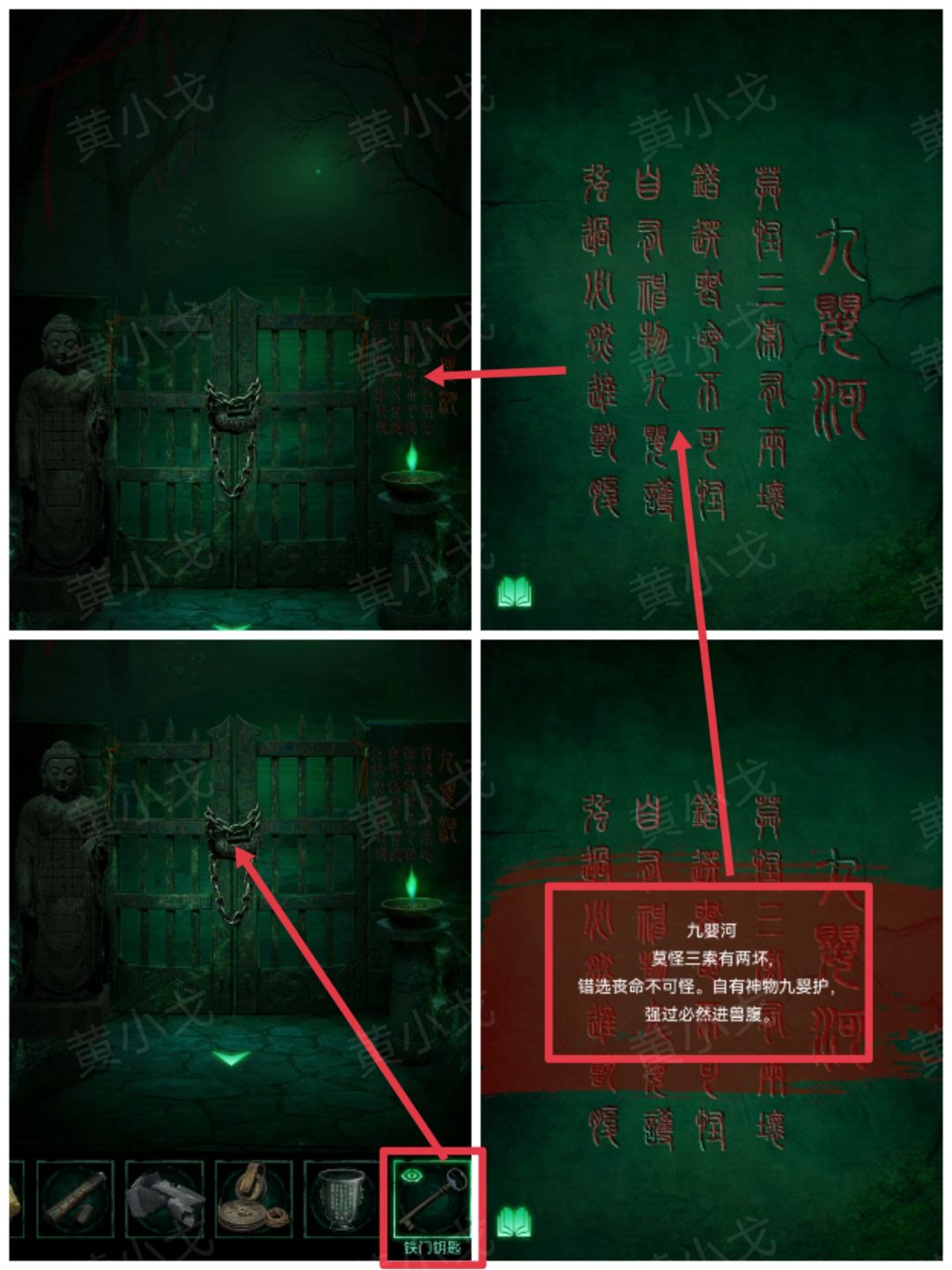 37.查看墙上的文字;用【铁门钥匙】打开铁门上的锁