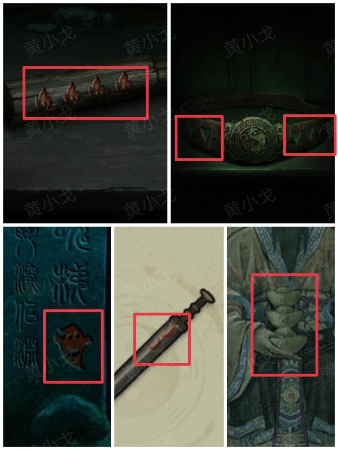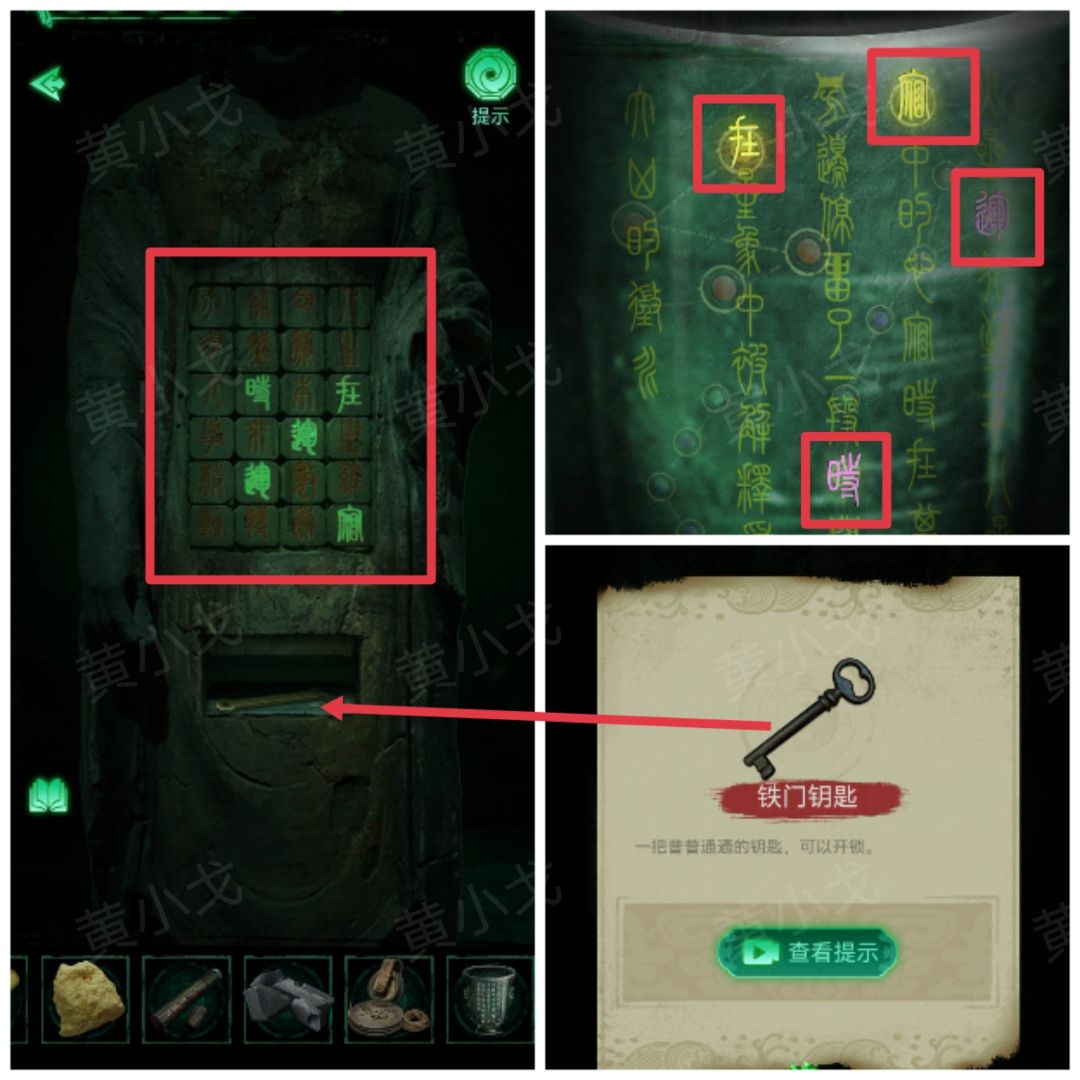 36.根据对青铜鼎使用【夜光杯】后得到的线索,按下对应的字块;打开暗格,获得【铁门钥匙】