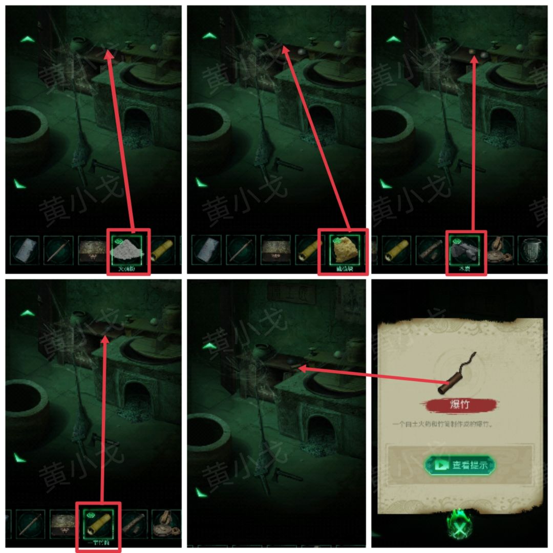 29.把【火硝粉】、【硫磺块】和【木炭】放到工作台上;用【一节竹简】装取火药粉,获得【爆竹】