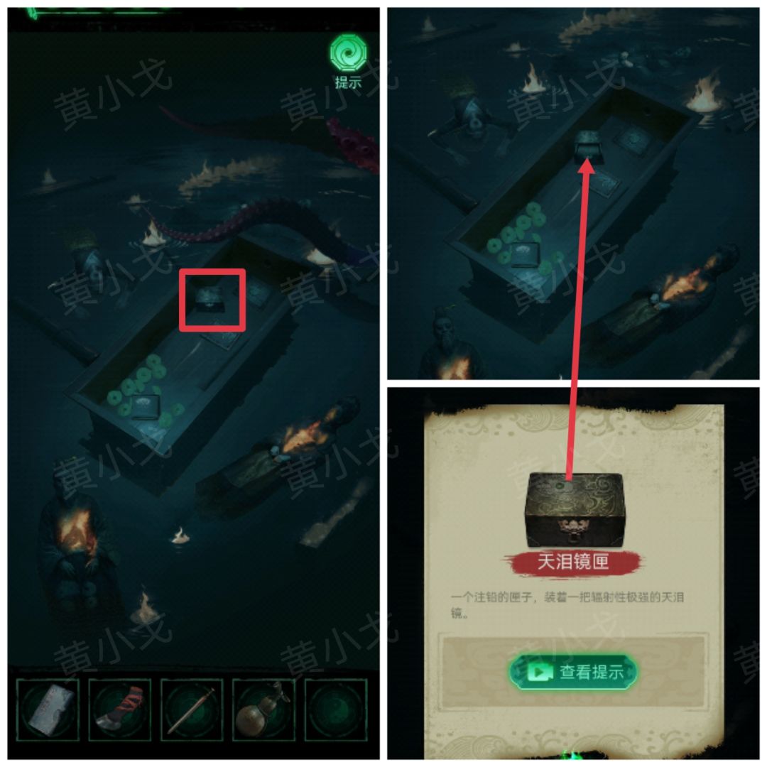 2.打开天泪匣子,吓跑章鱼怪;拾取【天泪镜匣】