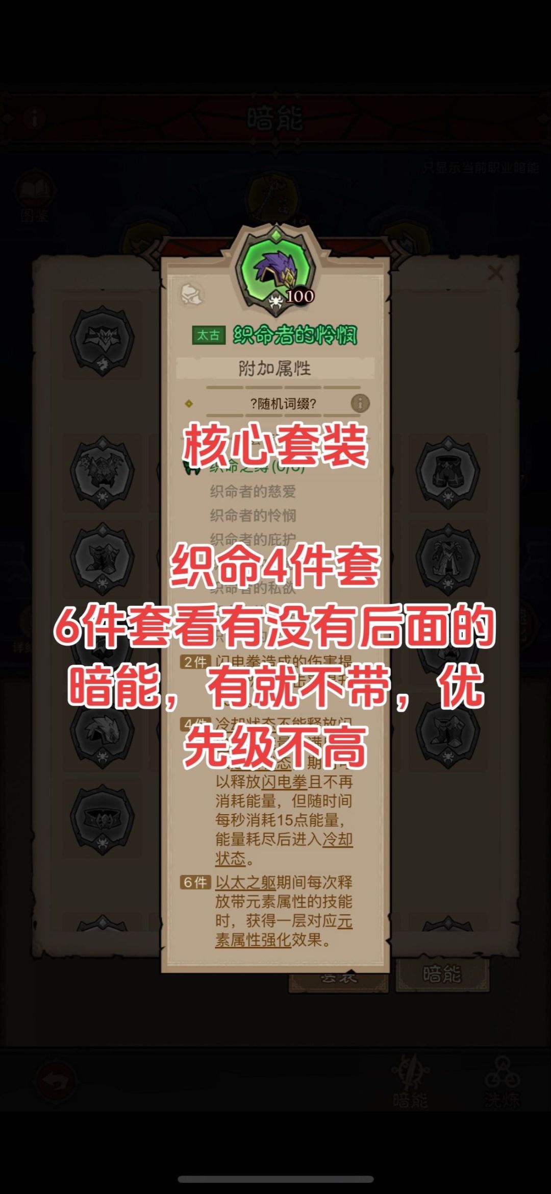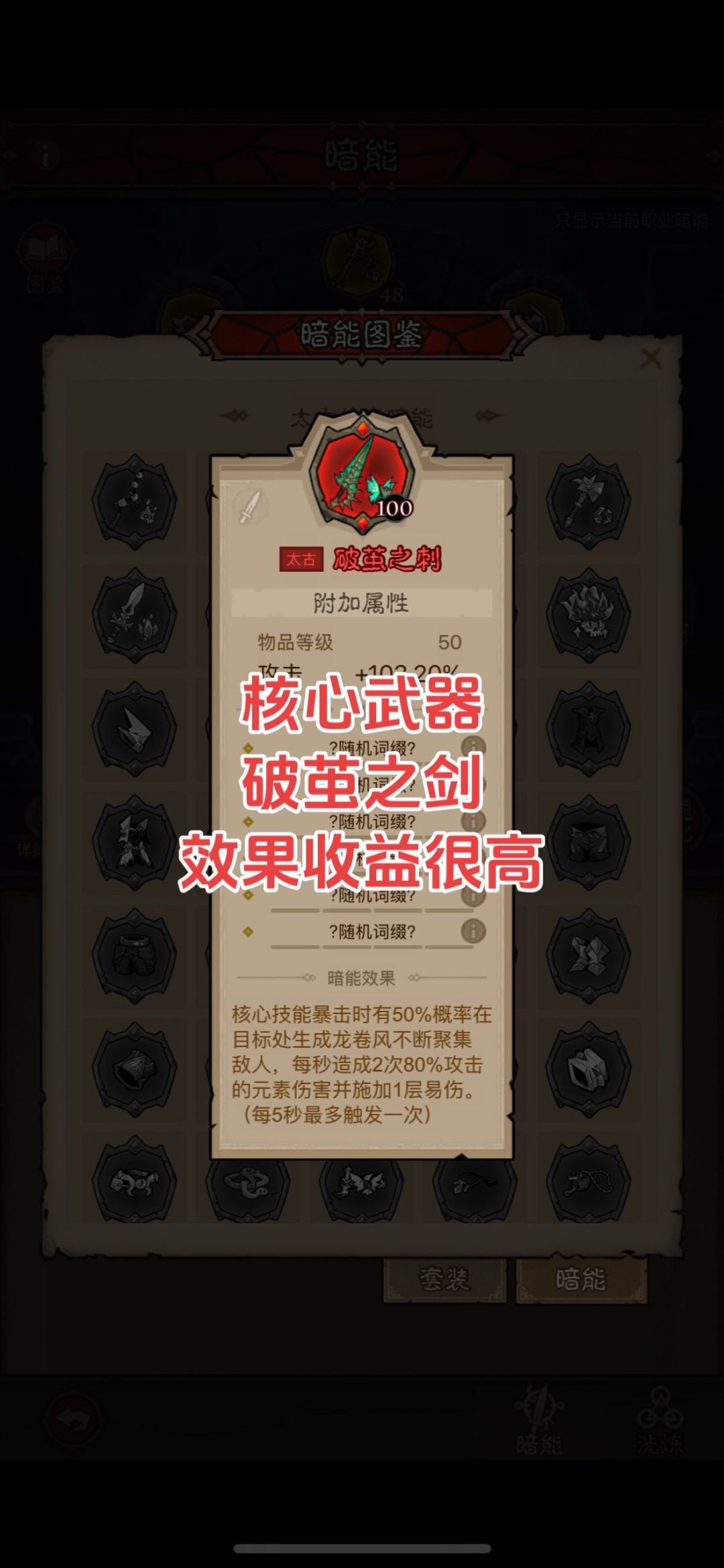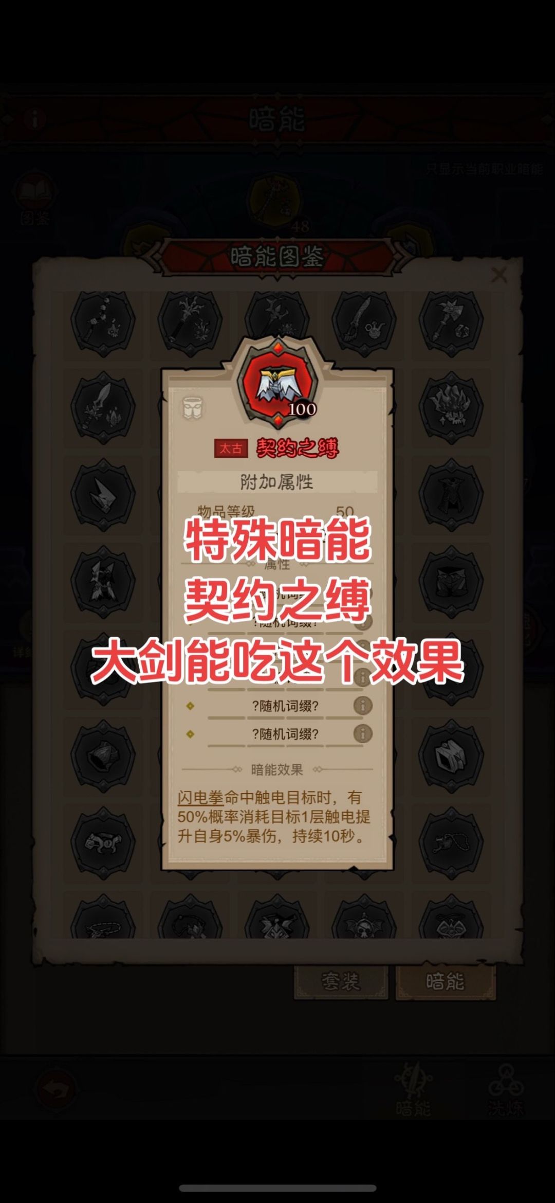 这套是冰大剑的开发,因为冰剑范围大且伤害高,吃暴击,配合雷的流派技能,契合度很高,强度大家可以试试,有点怕荆棘哦!不过也能玩