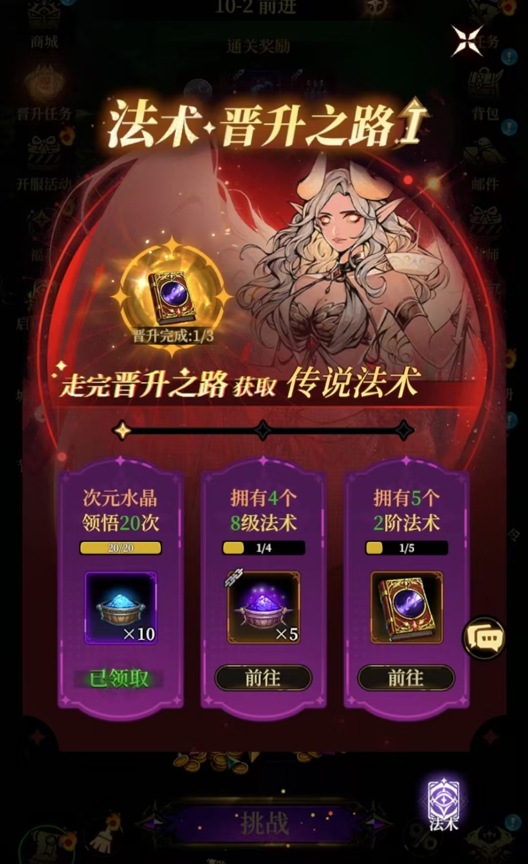 🔻完成日活跃任务与主线关卡,可以获得大量的法术领悟券(次元水晶抽技能);