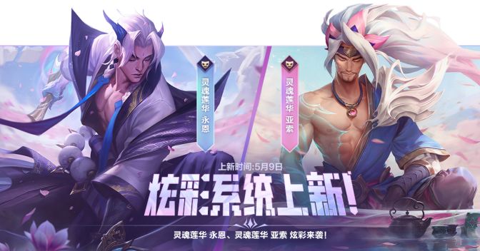 灵魂莲华 永恩与灵魂莲华 亚索现已加入炫彩系统,为峡谷再添灵动色彩~喜欢的召唤师可前往开启炫彩法球或使用点券兑换,将其拿下~