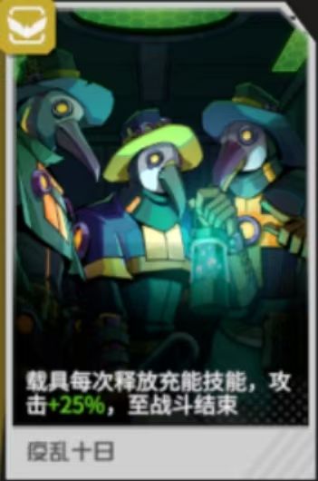 疫乱十日:对载具充能不生效,对普工生效,搭配复仇者食用更佳