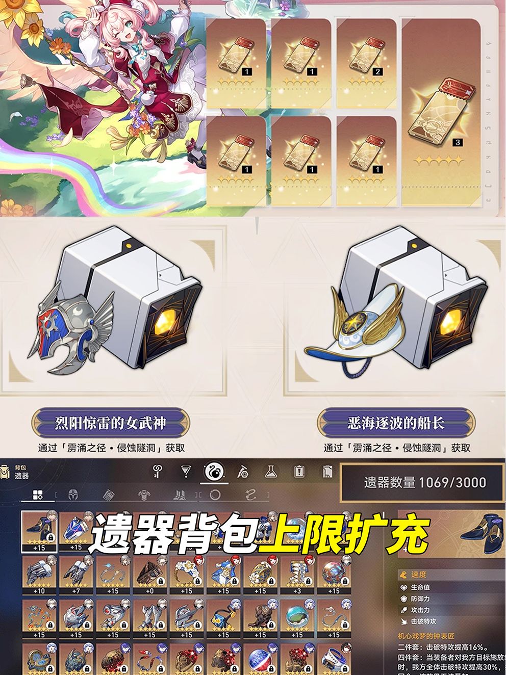 【优化】遗器背包上限由2000提升至3000;更换设备、新内容等等导致的红点显示逻辑,会进一步优化。