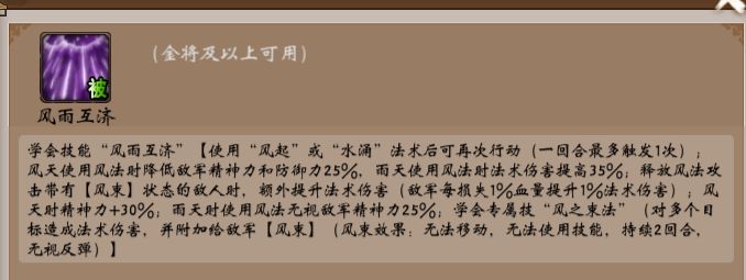 获得无双皮肤后进入战场可使用无双技【风雨互济】获得顶级效果和专属技