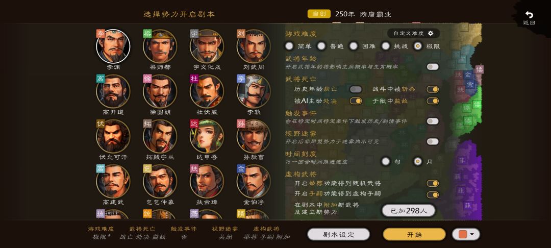 4、极限难度、回复技能60%、登庸招降60%、举荐、子嗣,死亡。官职用的是唐朝的。