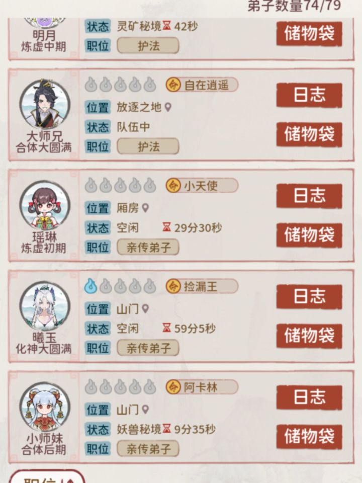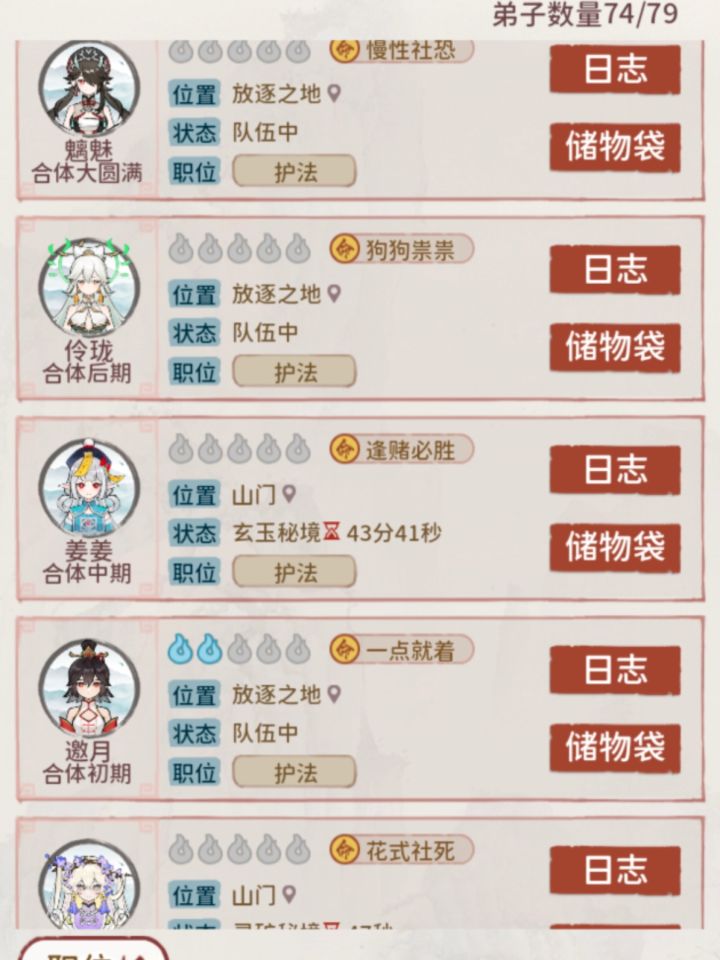 现在搞了好些弟子,不知道那几个比较好,也在攒礼物,想换更好的弟子,有无大佬指点指点