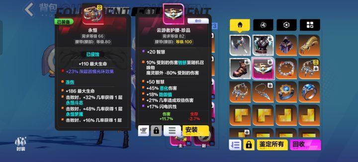 今天突发奇想把永恒腰带换个垃圾自制腰带(上图)准备冲一下20层,虽然还是没打过![[表情_捂脸哭]](https://img-tc.tapimg.com/market/images/83aa452eea88b5c64df710bca367b7e9.png)
