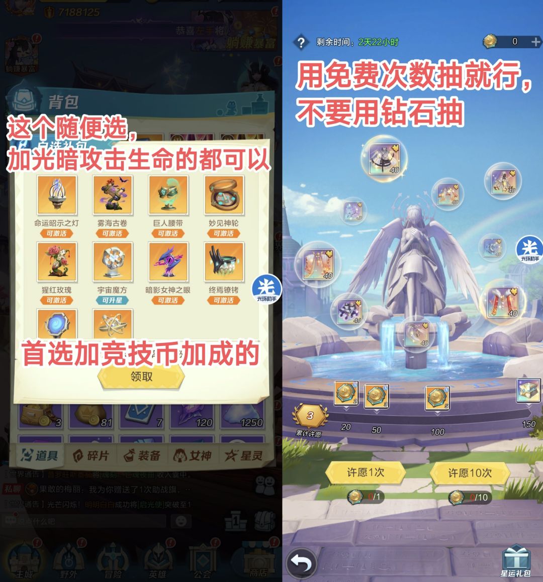 还是和神裔一样,只抽免费的,尽量别用钻石抽,后面会有神石战灵活动,尽量每次活动都能维持钻石在5w左右,这样能多拿点资源