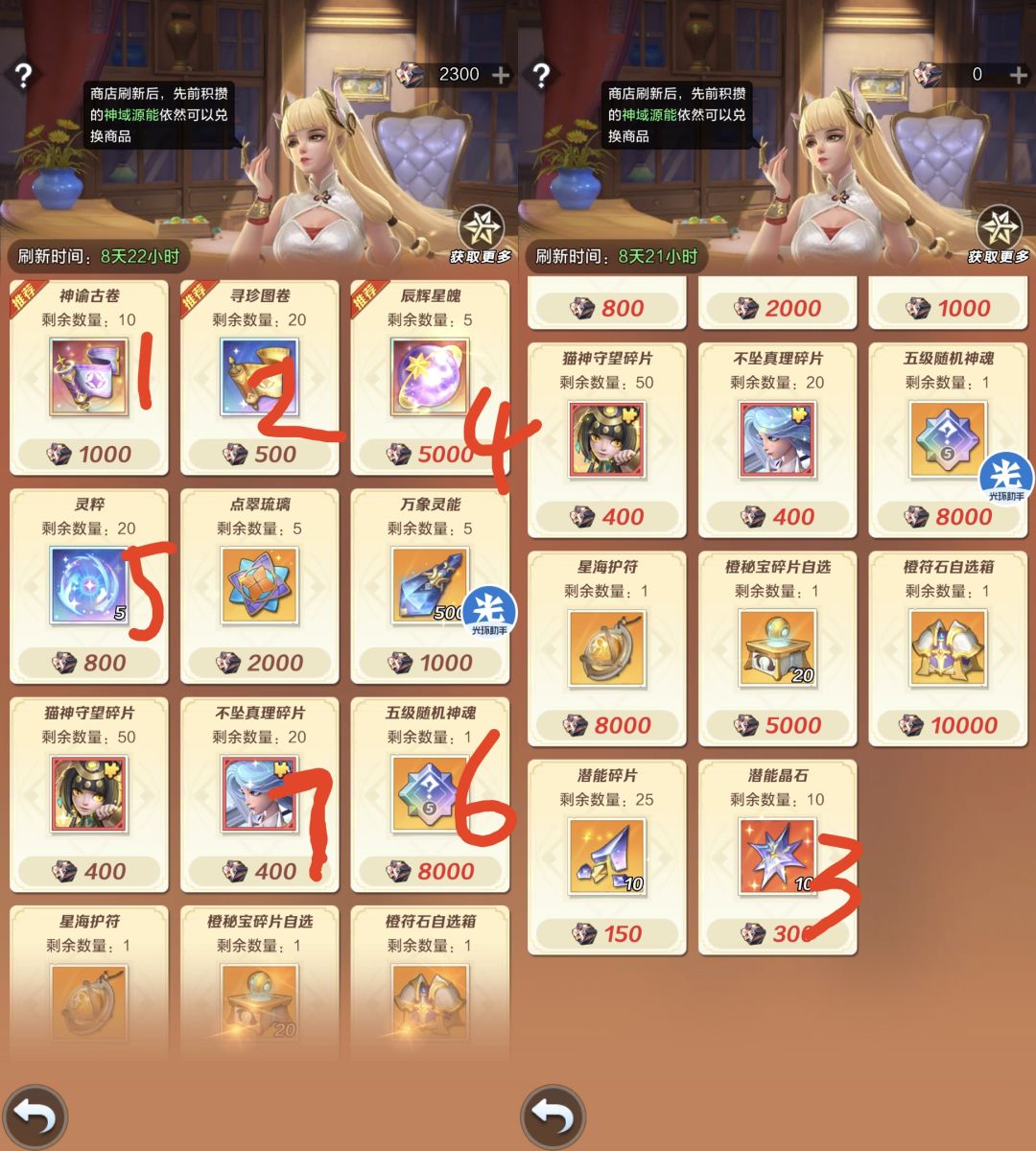 1.商店兑换顺序如图