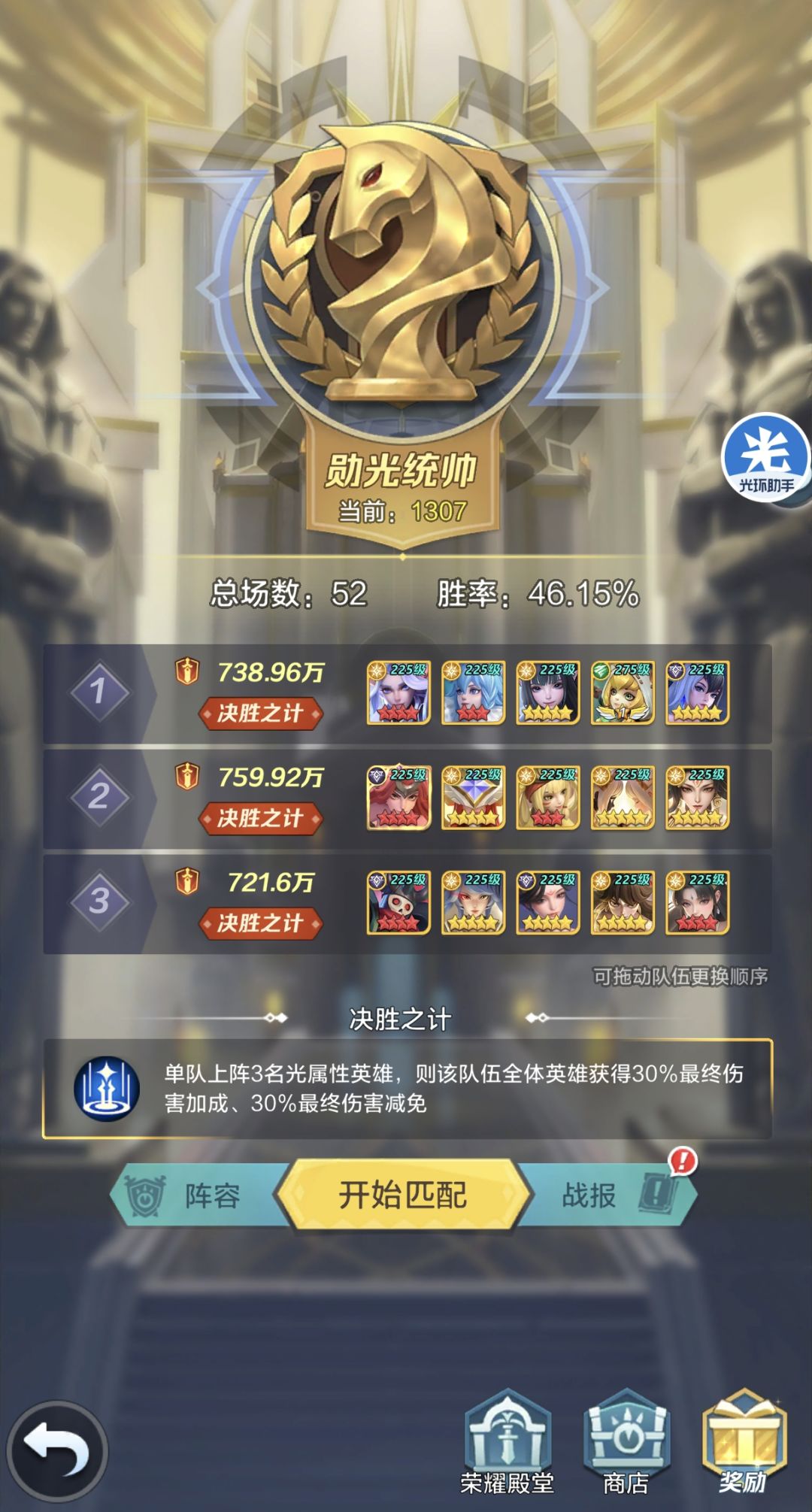 建议把上阵阵容拆分为两队,另组摸鱼一队,三队按实力分为1>2>3,三局两胜。