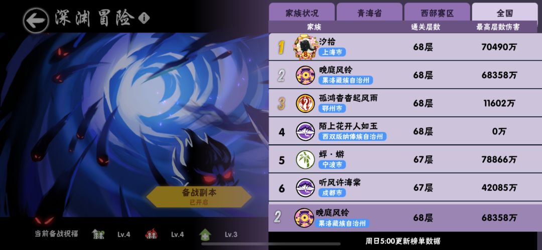 其中,入梦的莫妮卡咔共斩获5次家族第一,位列名人榜榜首,傲视群雄!
