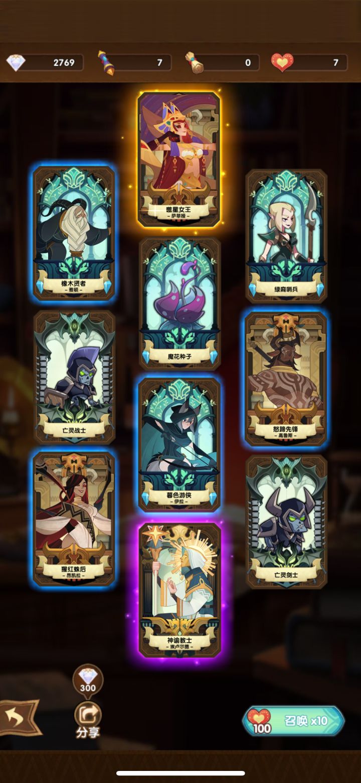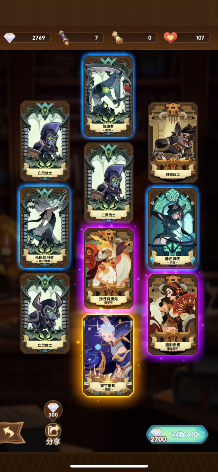 今天运气爆棚啊,先是一个十连,中了2张紫卡和1个SP,然后友情十连又中了1个SP和1张紫卡
