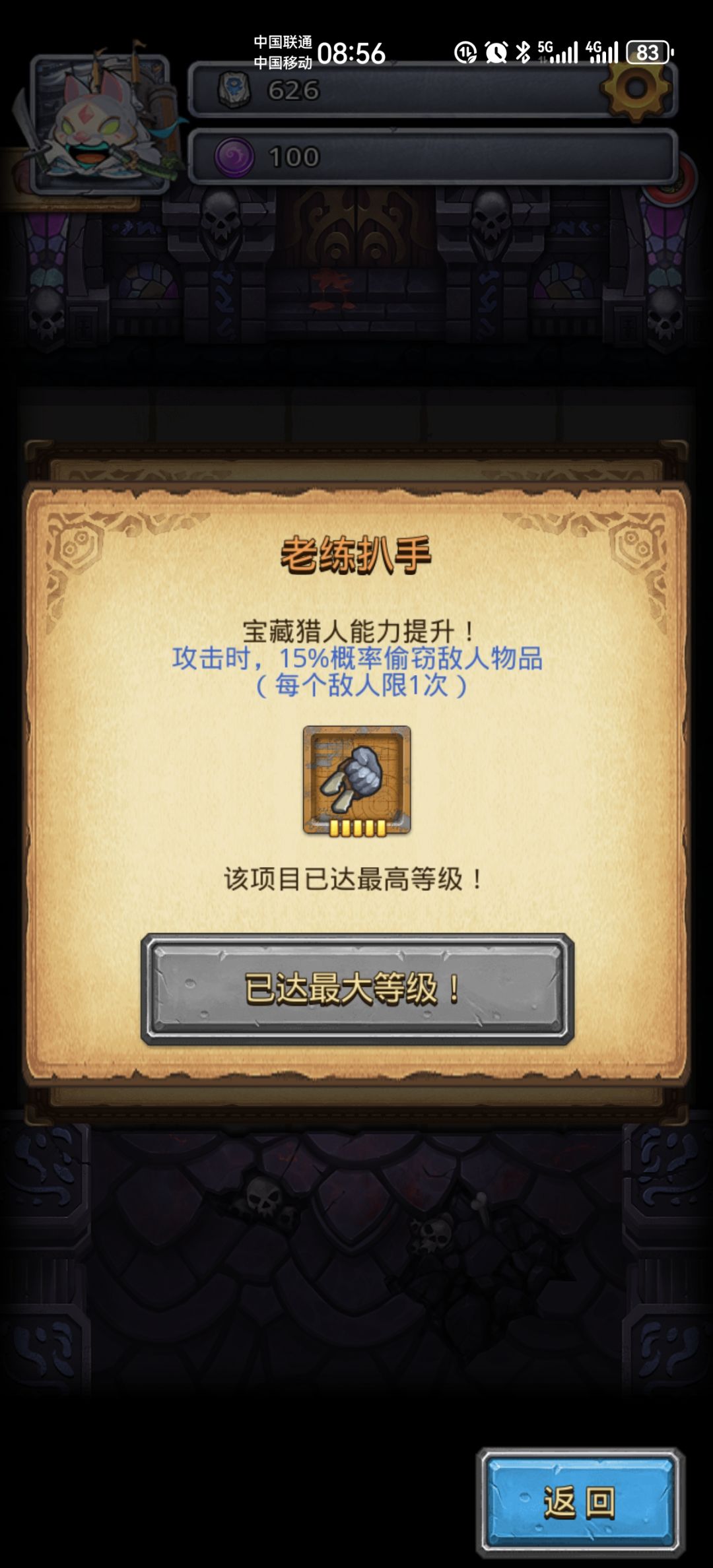 宝藏猎人执照全技能如图,加点建议优先灵魂收割,然后钥匙(根据下图后遇到的npc的情况制作),后面从力量,生命过度到炼金调和,满级调和可以100%药剂正向Buff,如果用灰色药剂刷出拘禁灵魂效果开灵魂,外加欧洲人开出777大奖的话,满灵魂收割+灵魂结晶,刷1体图能有230+的魂晶簇,美滋滋!