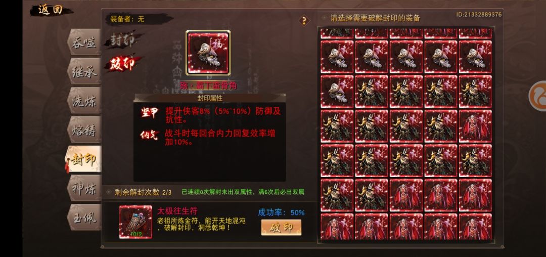 前期装备:前期进度很快,不用刻意去弄装备,跟着主线走,穿完成任务送的装备就行。氪佬钱多可以在酒馆黑市买。装备可以强化,前期强个10-12就差不多够用了,再向上成功率太低,铜钱伤不起。