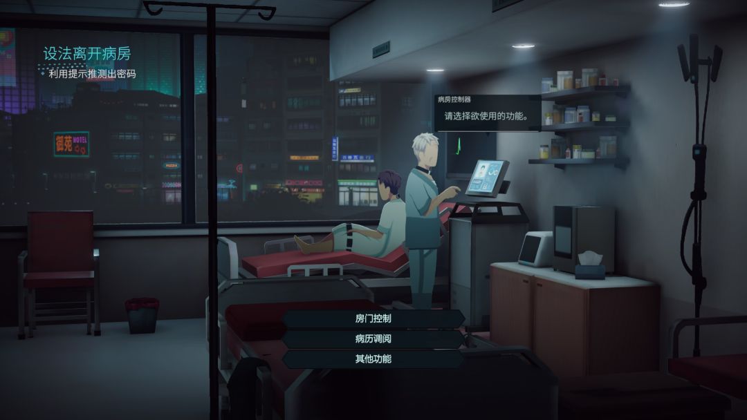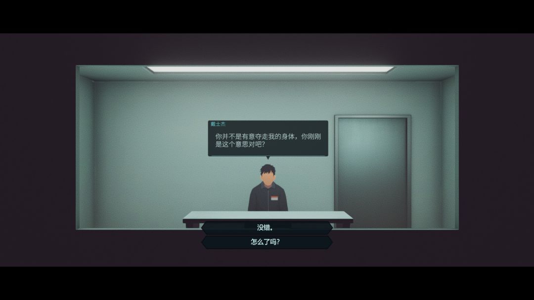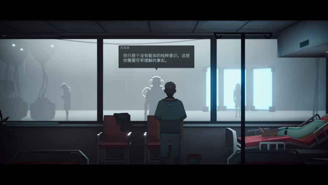 看着是简单的剧情,但就在二人找对策准备利用房间中的控制系统逃离这里时情况发生了,队友被机器自动注入药剂晕倒在床上,而刚才还是城市夜景的窗外径直变成了一间类似于实验室的地方,接着窗对面的神秘人告知主角只是个没有躯体的意识而已,此时只是附身于黑帮成员身上完成问询任务,代号MBU,一股强烈的被操控感扑面而来。