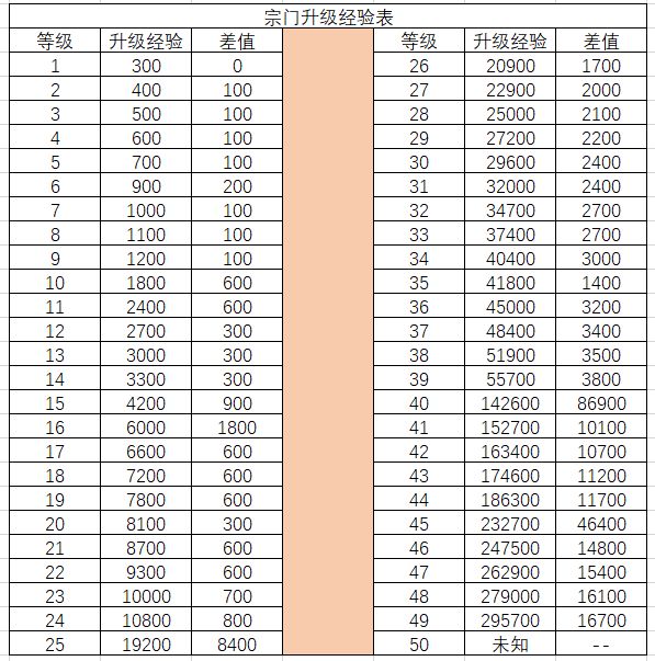 统计了一下宗门升级经验以及生产资源的消耗与产出,供参考