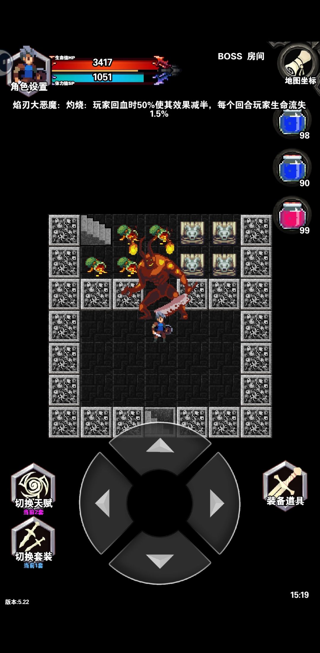 ▶灼烧:玩家回血时50%概率使其效果减半,玩家每回合流失最大生命值的1.5%