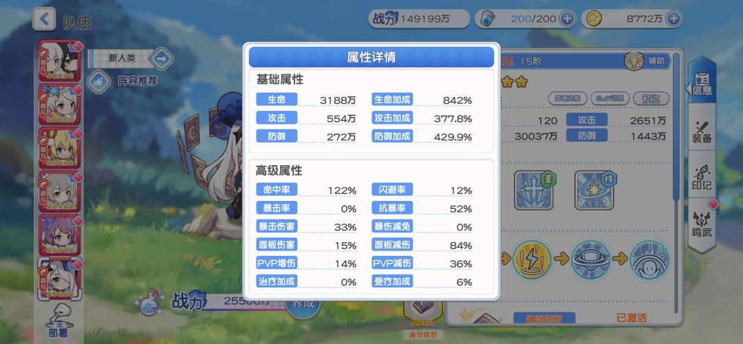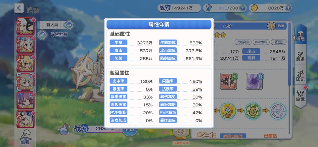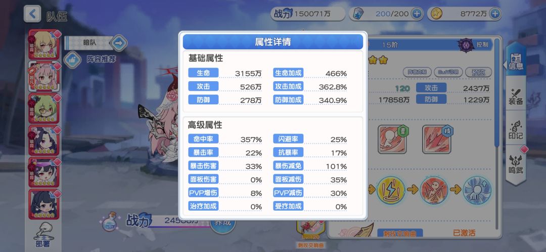 由于本人光控,小幸,春风都没满,所以战力偏低