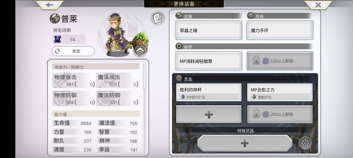 (翠晶锤,本身MP消耗减20%,三部中篇再强化MP加了50,古八妖)