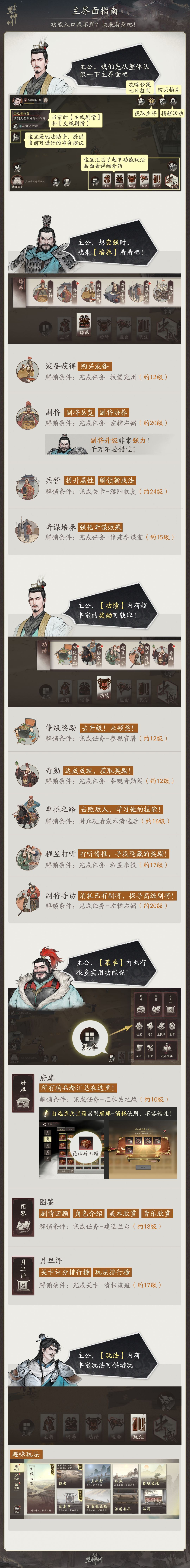诸位明公,今日锦囊已送达!各种功能一网打尽,开放等级快速预览!