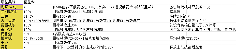 此表是为了统计当前版本所有英雄的增益效果以及覆盖率