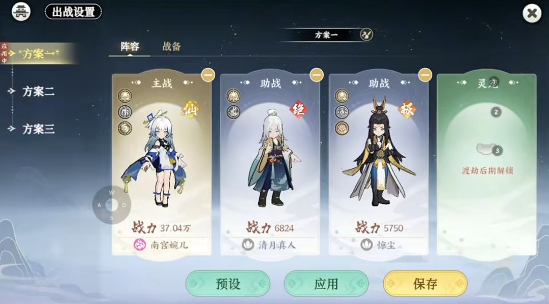 兄弟们大家好,众所周知,南宫婉儿是伙伴的主要c位,最强输出,本次攻略教兄弟们如何搭配上阵伙伴。目前按我的思路,有2套方案,氪金大佬可以选择二次一辅,副c选择青玉单体输出最强,三辅助选择翎月曦,我们每一名金色伙伴,都有三种方案,颜色有亮度就说明激活了阵法,目前这一套阵法激活的羁绊是最多的。
