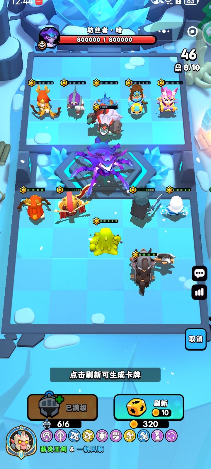 首先说明,配置要求6+3女皇,4弓核(测试阵容是7+4女皇,3弓核)3/4雷神(我雷神4,没法测试,不过应该还行)战核至少4,如果战核只有4,那么冰骑最好6以上,其余紫卡和金卡不做等级要求。