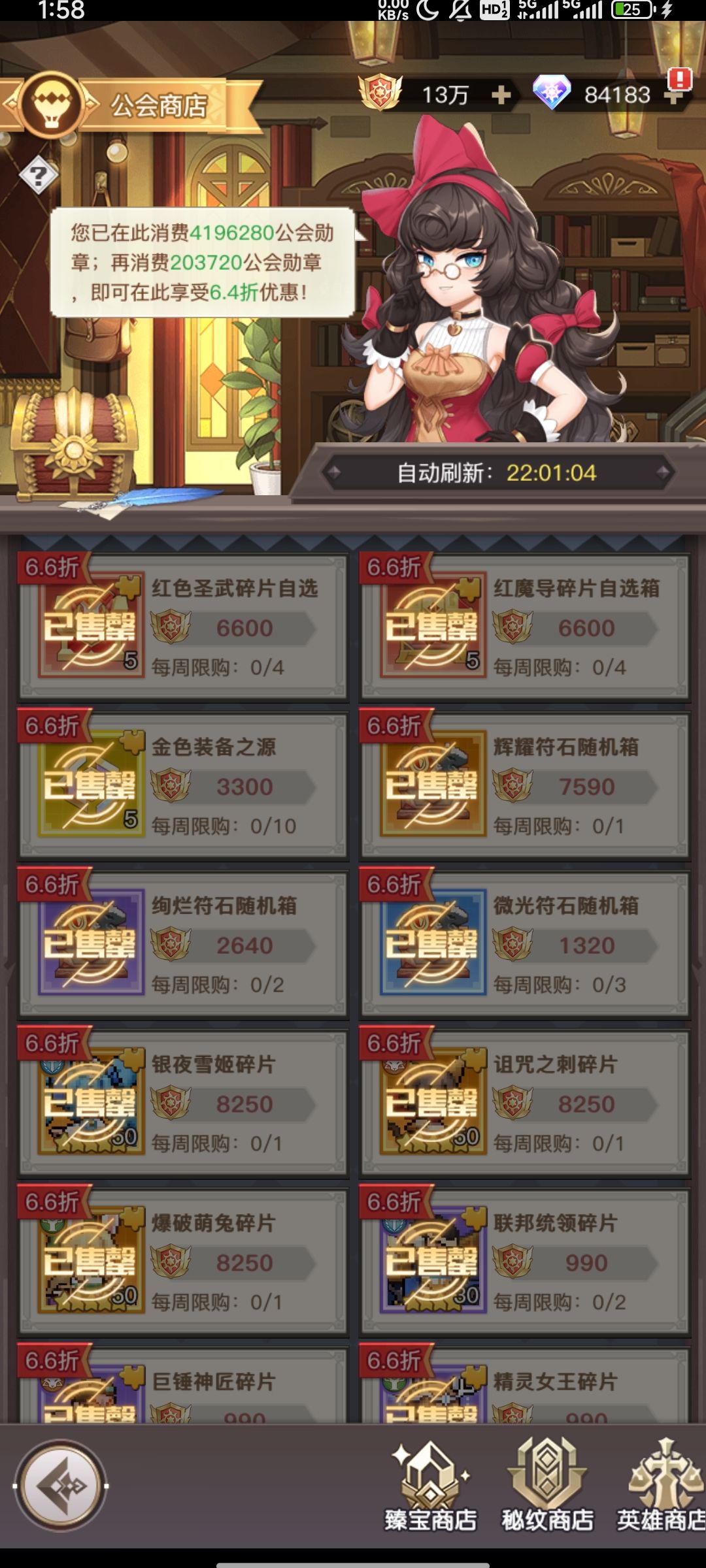 公会商店(花钻石买公会远征次数很重要):前期只买前6个(看个人情况),后期不缺这玩意的时候把除了红色装备的都买了