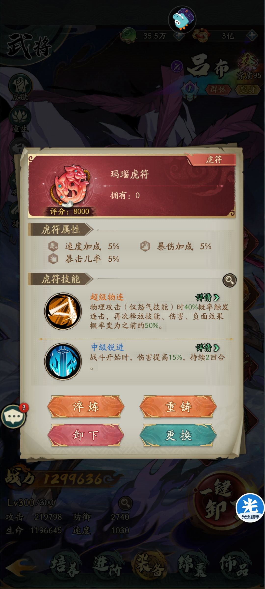 虎符第一个小毕业,应该可以用很久了等弹珠再把另外一个超级复活技能洗出来!