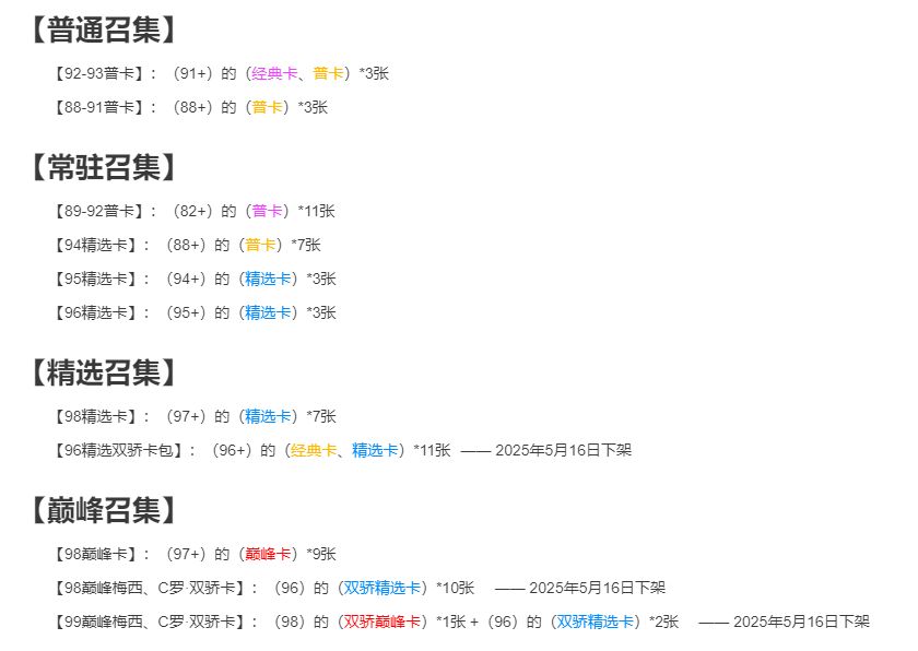 最新版【召集功能】球员召集、阅历提升指南 —— 一览表