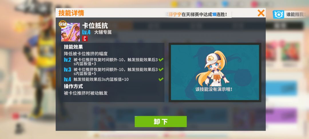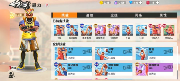 大辅的强化盖帽,爆发盖帽能很好的针对扣篮队伍,盖帽传球这个技能就是扣篮地板流的克星,是极少投篮扣篮盖帽双有效的技能。抢篮板的时候被人卡位很难受,卡位抵抗能让你快速恢复被推挤来起跳。外线防守的时候在干扰线外一步的盖帽距离也能让你冒得外线头昏脑胀。升级到ACE能提供9 9 6的援助属性堪称内线援助之王。新手养一个大辅,不管是直接玩还是做应援都是个强力的选着