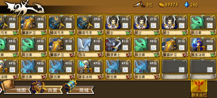 前期可以搞个弓队或者法师队随便混,抓几个肉前面顶着,有人会疑问这还用你说,狗屁攻略啊,你先别急重点来了。前期先买个金币,不用多说吧,至于抓人就很关键了,前期肉盾就抓4个资质要求,血,防双s,有没有被动都没关系,输出抓6电法师资质要求攻,暴,速全在A以上就行,同样的被动可有可无,有就最好。(如果碰见被动是财富的电法,速度或者暴击资质在A以下也勉强先拿着用),后续就是抓风铃先抓8个差不多的用着,然后就找一下财富风铃,具体的你们可以看一下其他大佬的攻略,截止到这里,有人就说了,我狗叫半天和其他人的有什么区别?你先别急,接着看接着看,后续就是差不多团长35级了,我直接一手买等级到75/80级,只要224砖,下面开始快乐时间,去花18000金币买英雄,直接和团长一样的等级,出啥用啥,又肉又有输出,开始快乐过图。还用我说?先别急,细节来了。