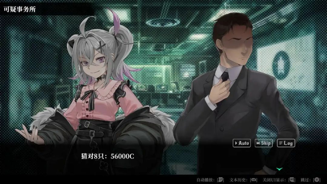 以第一章魔女为例,她可以通过气味分析出扑克牌的牌面,而作为玩家的我们该怎么样去发现、去分析、去解决,就需要视觉小说的表达方式了,通过不断的询问,探索推动剧情,再发现关键道具,最终影响魔女的千术,从而获得胜利。