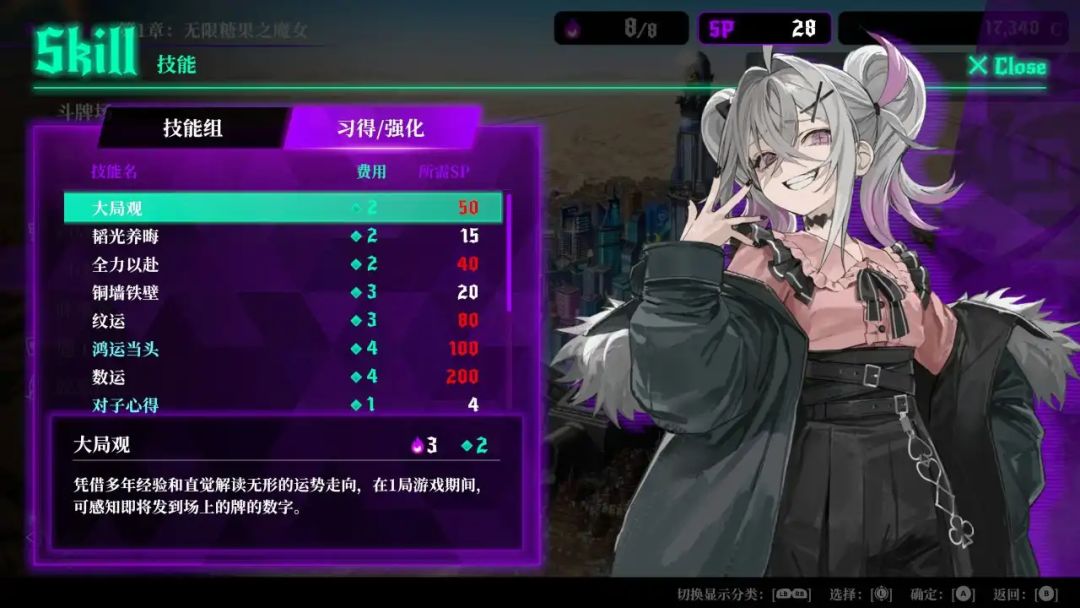 但面对千术高超的魔女,我们该怎么应对?没错,也是出千,在游戏中玩家可以通过击败对手获得点数,去学习一些千术技能。
