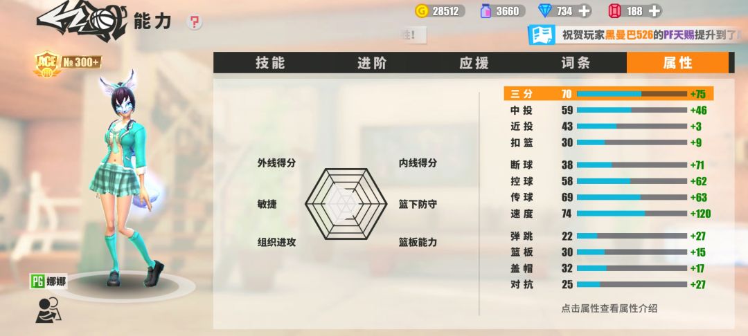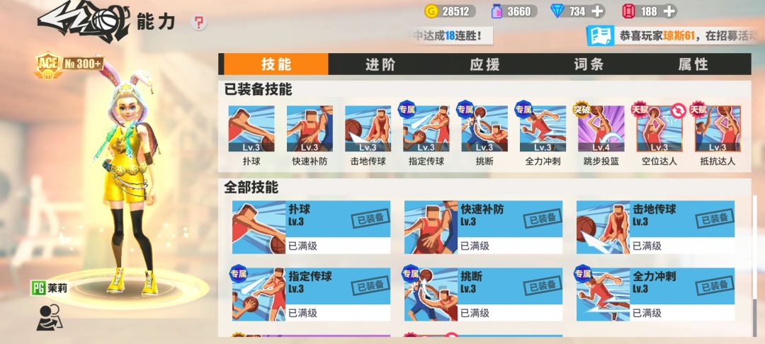 本人是传统的地板位 茉莉有几点 浅聊一下 茉莉皮肤词条可以洗出挑断技能 建议玩家可以加强橙色挑断(之前洗掉有点后悔)挑断技能一出 就可以完全不惧怕扣篮队 当二大一小扣篮阵容出现时 完全和本队得分位 换防 到内线疯狂挑断球 掏球成功率还是很高的 扣篮阵容在内线拿球 由于对方内线 移动速度不快 还是会相当有所顾忌 (之前5级挑断的时候有一场 内线保安就被掏的怀疑人生) 但是主要看你玩什么类型 得分茉莉优先选择跳步投篮 投篮免干扰 再天赋搞两个抗干扰达人v3 放着胆子顶投 防守茉莉可以选择一个扑球 有条件可以洗出绝妙扑球 但是我是精湛扑球和 绝妙跳步投篮 (主要还是穷)时装词条加点建议选属性 速度 三分 断球(或者控球)词条:优先扑球 其次重炮 还有猎杀者 如果卓越扑球 卓越重炮 卓越猎杀者 都有 那你这个茉莉有是ace大概率可以横着走 还有属性五点一档 200的速度其实和204是一样的 169的三分还是和165一样球员应援的时候也可以微调一下最好各类属性凑到5点 我也是街球菜鸟 有感而发 有说错说的不足的地方 大家多多交流#街球艺术 #街球艺术赛事 #街球艺术2
