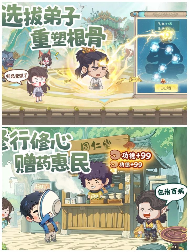 🌈白天经营道馆,指挥各怀绝技的弟子们种灵植、炼丹药