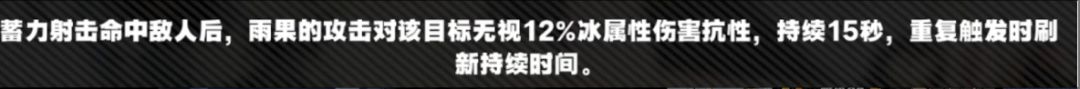 莱特可以降低目标冰属性伤害抗性,还能延长目标失衡持续时间,狼哥同样可以降低目标冰属性伤害抗性且附带失衡易伤,他们两位都能让雨果失衡后【决算】效果爆发伤害更高,失衡循环更快。