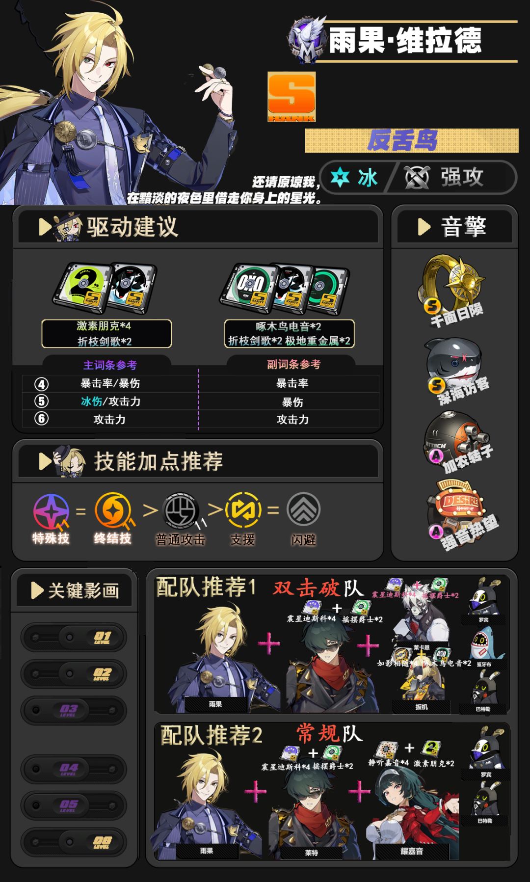 【1.7攻略征集】雨果养成一图流攻略︱驱动盘︱词条︱配队建议