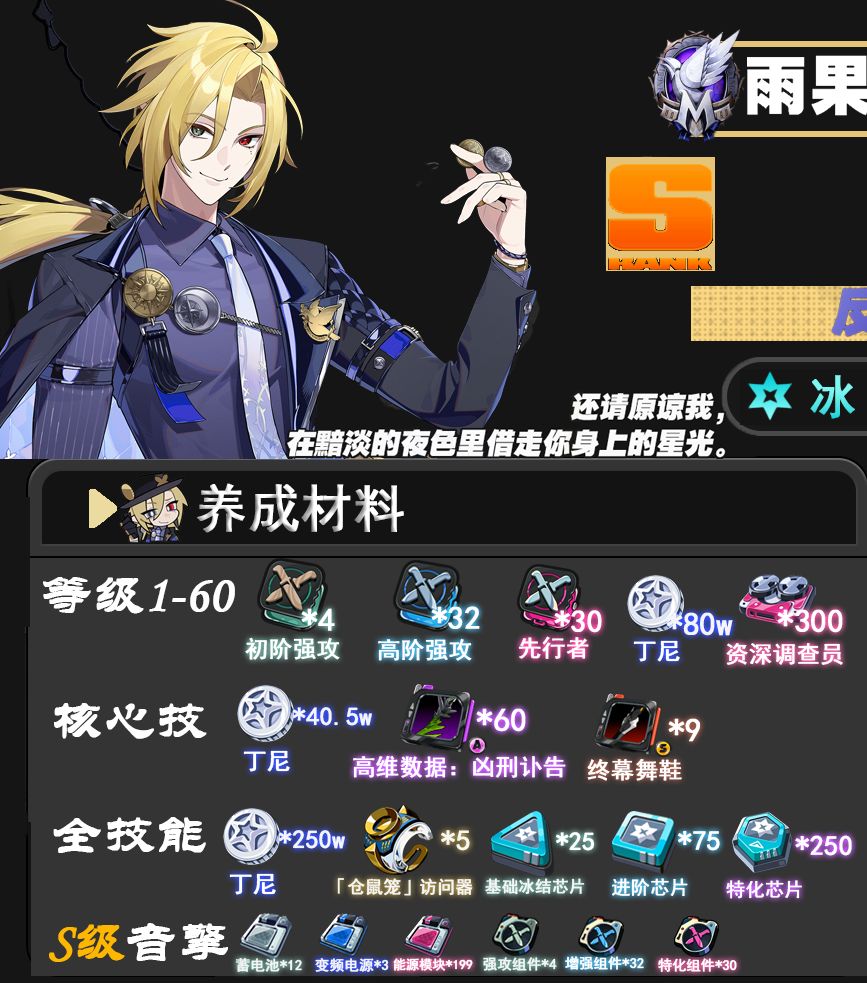 「雨果」养成材料: